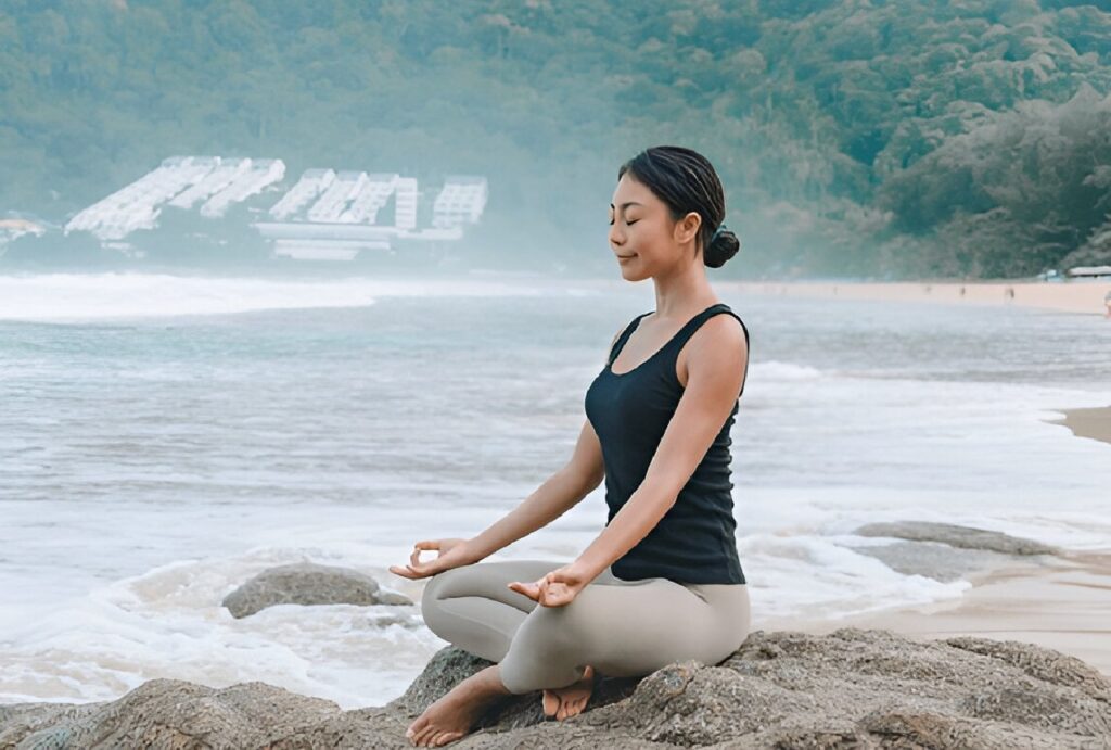 Experience peaceful beachside meditation in Rishikesh along the serene Ganga shores.